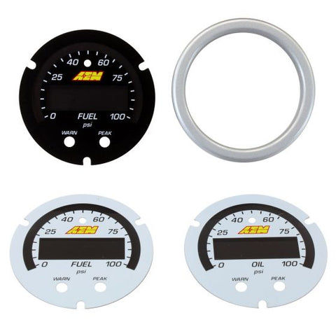 商品説明 これらのアクセサリーキットは、AEM Electronics Xシリーズのゲージに適合するように設計されており、ホワイトおよびシルバーのベゼルで代替のダイヤルフェイスを提供します。また、一部のキットには、ゲージタイプを変更するためのフェースが含まれています。詳細は以下の通りです。