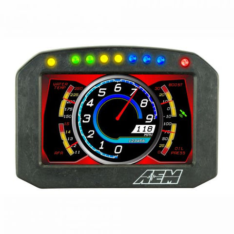 商品説明 | AEM Electronics社のCD-5カーボン・デジタル・ダッシュ・ディスプレイは、すべてのダッシュボード・ゲージを置き換える超軽量でコンパクトなソリューションであり、モータースポーツでの使用やキットカー、カスタムカー、レストア・モッドに最適です。5インチのフルカラースクリーンには、ユーザーによるカスタマイズが可能なレイアウトが表示され、必要なパラメータのみを表示することができます。CANバス入力とシングルパワー/グランドケーブルにより、シンプルなプラグイン接続が可能で、250以上のCANデバイスのデータを表示することができます。 超軽量・コンパクトなカーボンコンポジットケース(総重量331g ユーザーが設定可能なディスプレイレイアウトにより、個性的なダッシュボードを実現 解像度800x400のフルカラー5インチスクリーン、直射日光の下でも視認可能なアンチグレアフィルター搭載 2つの独立したプログラマブルCANバス接続からチャンネルを受信。AEMnet対応機器とAEM以外のサードパーティ製機器を並べて使用可能。 GPSオプションは、ラップ/スプリットの計測、トラックマッピング、ラップタイムの予測を可能にします。 IP65の防水性能を持ち、オープンコックピットの車やバイク、マリンユースに最適です。 AEM Electronics CD-5カーボン・デジタル・ダッシュ・ディスプレイは、7つのプログラム可能なページを備えており、必要なものすべてを自分に合った方法で表示することができます。ユーザーが設定可能なアラームは、200個のSAEおよびカスタム警告アイコンによって視覚化され、必要に応じて自分で追加することもできます。ユーザーが設定可能なアラームは、200種類のSAEおよびカスタム警告アイコンによって表示されます。また、ダッシュボードにはグラフィック編集ソフト「DashDesign」が付属しており、簡単にカスタマイズすることができます。本体上部には、RPM/シフトライトとしてプログラム可能な7つのLEDがあります。さらに、プログラム可能な2つのLEDがメインクラスターの両側に配置されています。 接続性 このデジタルダッシュディスプレイは、2つの独立したプログラマブルなCANバス接続に対応しており、AEMデバイスと非AEMデバイスを並べて接続することができます。ダッシュディスプレイは一般的なアフターマーケットECUに接続できます。2008年以降のOEM ECUには、別売のプラグ&プレイOBDII CANアダプターケーブルを使用します(詳細はこちらをご覧ください)。旧式のECU制御車両やECUのない車両には、22チャンネルのCANセンサーモジュールを用意しています。このモジュールは、アナログ、デジタル、周波数の入力を、AEMダッシュと互換性のあるCANバス信号に変換します。22チャンネル以上が必要な場合は、モジュールをデイジーチェーン接続することができます。モジュールの詳細についてはこちらをご覧ください。また、アフターマーケットのHolley、MSD Atomic、VI-Pec ECU用のプラグ&プレイアダプターハーネスも用意されています。 GPSオプション CD-5ダッシュディスプレイは、20hzのGPSレシーバーとアンテナの有無を選択できます。GPSオプションは、正確な速度と距離の情報に加えて、ラップタイムとトラックマッピングを提供します。これにより、ラップの各セクションでのタイムロスやタイムゲインを示すことができ、ラップタイム向上のための貴重なツールとなります。また、ラップタイムの増減をリアルタイムに表示することで、予測可能なラップタイミング情報を提供します。 拡大 CD-5 dashの機能をさらに拡張したい場合は、別売りの拡張パックをご利用ください。 8チャンネルKタイプEGTモジュール - このモジュールは、最大8つのKタイプ熱電対の温度入力を、1つのCANバス接続を介してダッシュに送信することができます。 ビークルダイナミクスモジュール - このキットには、GPSレシーバーとアンテナ、および横方向、縦方向、および垂直方向の加速度を提供する3軸ジャイロスコープが含まれています。 |