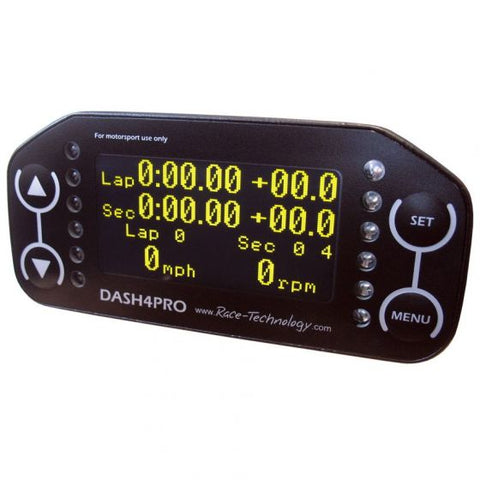 商品説明 | Race Technology社の新製品Dash 4 Proデジタルディスプレイユニットは、コンパクトなダッシュボードに充実した機能を搭載しています。装着する場所に応じて、OLEDとLCDの2種類のディスプレイが用意されています。OLEDは直射日光が当たらない場所での使用に適しており、超高コントラストを実現しています。一方、LCDはバックライト付きで、あらゆるレベルの光の中でも使用可能なトランスフレクティブ・テクノロジーを採用しています。本体はコンパクトなので、ステアリングホイールへの取り付けはもちろん、フラットパネルやカスタムブラケットへの取り付けも可能で、取り付けの選択肢が広がります。 DL1データロガーに接続すると、Dash 4 Proは予測ラップタイムとライブタイムスリップの両方を表示することができ、ドライバーに目標を与えるとともに、パフォーマンスに関するリアルタイムのフィードバックを提供します。さらにグラフィカルな表示を行うために、シフトライトは緑と赤のライトシステムでタイムスリップを表示するように設定できます。表示される情報は4ページで構成されており、ECU変数、速度、アナログ入力などの情報について、文字の大きさや画面の明るさなど、ドライバーの要望に合わせてレイアウトすることができます。また、Dash 4 Proには、重要なエンジンシステムが選択したパラメータを上回ったり下回ったりした場合に、ドライバーに警告を発するアラームを設定することができます。 CNCアルミ削り出しの筐体に、防水加工された高品質なコネクターを備えたこのユニットは、優れたデジタル・ダッシュ・ディスプレイであり、カスタマイズの余地も大きい。 |