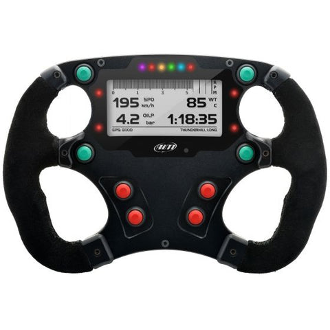 商品説明 | AIMフォーミュラ・ステアリングホイール3は、フォーミュラカーやスポーツカーのために特別に設計されたダッシュディスプレイ一体型のステアリングホイールです。直径270mm、バックライト付き(7色)のディスプレイには光センサーが内蔵されており、どんな天候でも明るさとコントラストを保つことができます。このホイールは、ほとんどのフォーミュラーカーやシングルシーターカーに装備されている、業界標準(PCD50mm)の3ボルト固定で取り付けられます。 EVO4S / EVO5データロガーに内蔵されているECU、3軸加速度センサー、GPSから得られるラップタイムやすべての値を、ステアリングホイールのディスプレイに表示し、常にコントロールすることができます。 フォーミュラ・ステアリング・ホイール3は、オプションでパドルシフトの有無を選択することができます。 最大9つのページに好きなデータを好きなように表示できます。ラップタイムとデータを表示するページを入れ替えることは、100%カスタマイズ可能な方法です。データを選択し、それぞれに最大4つのフィールドを表示するページを作成するだけです。また、「RPMとラップタイム」のページレイアウトでは、RPMグラフ、ラップタイム、そしてお好みの2チャンネルを表示することができます。 ラップタイムを、ローリングタイム、スタティックラップタイム、プレディクティブラップタイム(絶対値またはベストラップとの差)として視覚化することができます。 6つのRGBシフトライトをギアごとに設定し、LEDの色や点灯/消灯する回転数のしきい値を選択できます。シフトライト、アラーム、カスタマイズされたデータページの設定は、強力なRaceStudio3ソフトウェア(無料でダウンロード可能)を使って直感的に行えます。 アラームの管理は非常に柔軟で、アラームが発生する状況、アラームが表示されたときのLEDの動作(点滅の頻度と色)、アラームの停止条件を選択することができます。また、警告メッセージを表示することもできます。 各セッションの終わりには、キーデータのサマリーが用意されています。セッション中のベスト3ラップのタイム、最小/最大スピード、最小/最大回転数が表示されます。次のページでは、セッション中のすべてのラップのリストを見ることもできます。 注意:これはディスプレイのみで、必ずAIM EVO4SまたはEVO5データロガーに接続しなければなりません。 |