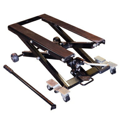 商品説明 | ヘビー級バイクリフト - カスタムバイクやクルーザー専用に設計されていますフット操作式の油圧式ラムを備えています。それは操作性のためにホイールマウントされていますプラットフォームサイズ680 x 370mm最大持ち上げ重量:500kg\n |